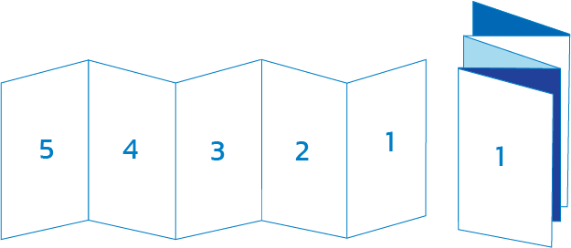 การพับสลับหรือซิกแซก 5 ตอน สามารถแบ่งวางเนื้อหาได้ด้านละ 5 ช่อง