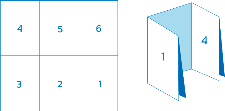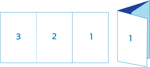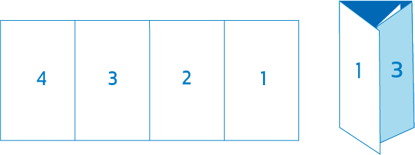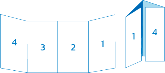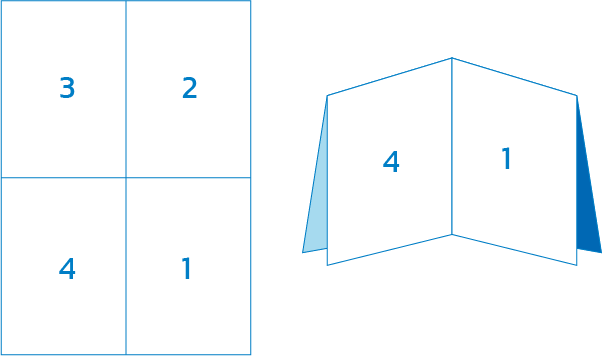 การพับหนึ่งทบ 2 ครั้ง โดยพับครึ่งเท่า ๆ กันแล้วพับอีกครั้งในทิศทางเดียวกัน โดยสามารถวางเนื้อหาได้ด้านละ 4 ช่อง