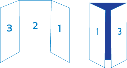 การทำโบรชัวร์พับแบบประตู มีการพับแบบด้านข้าง 2 ข้างเข้าหาตรงกลาง สำหรับกางออกเพื่อเผยเนื้อหาตรงกลางที่ใหญ่เป็นพิเศษ