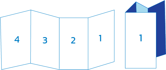 การพับสลับหรือซิกแซก 4 ตอน สามารถแบ่งวางเนื้อหาได้ด้านละ 4 ช่อง