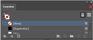 1a. คลิกตัวเลือกเมนูเพิ่มเติมบน Swatch palette