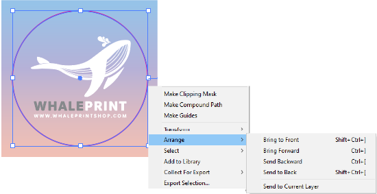 7d. คลิกขวาที่เส้น spot colour “Dieline” เลือก “Arrange” และ คลิก “Send to Current Layer
